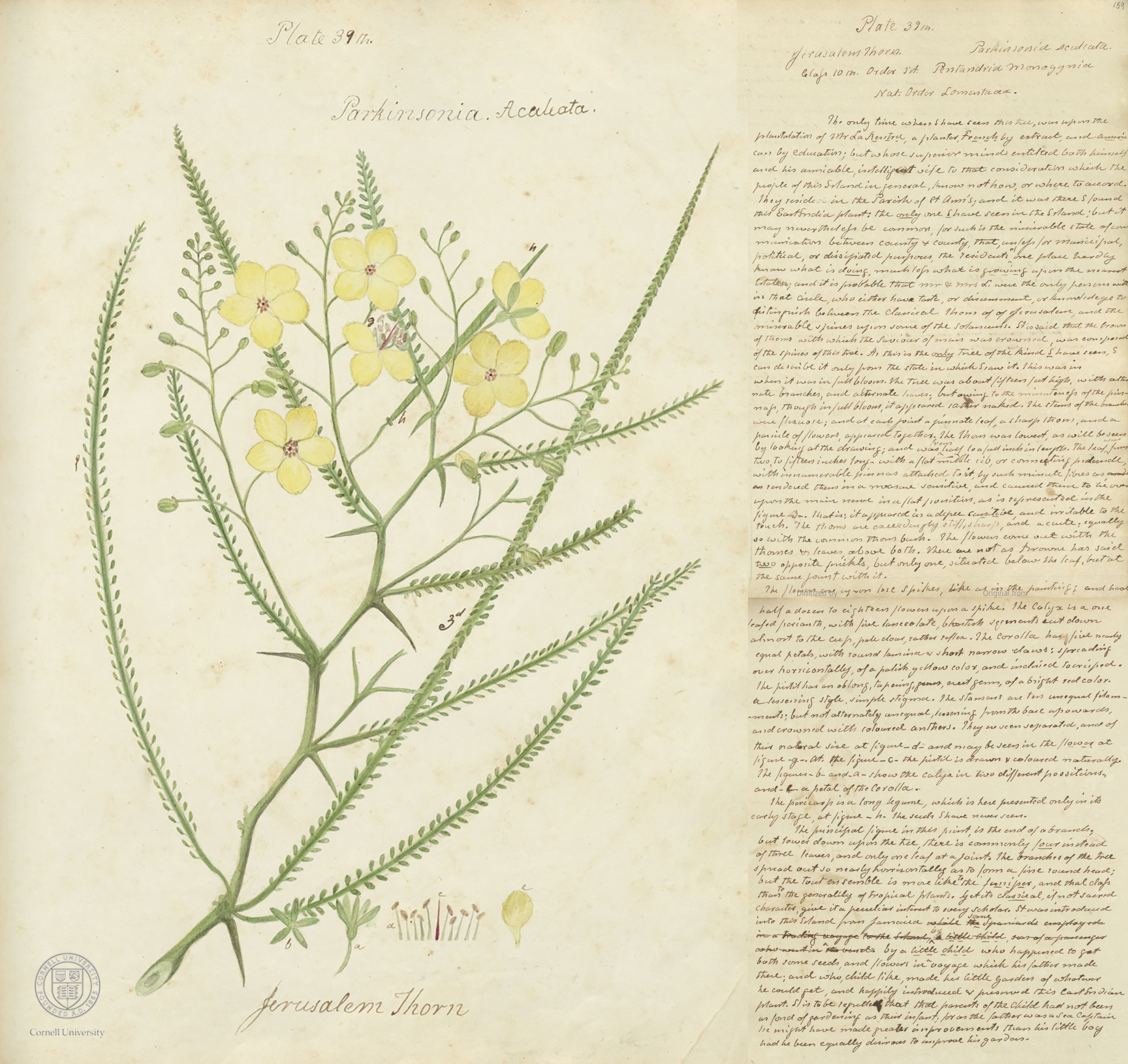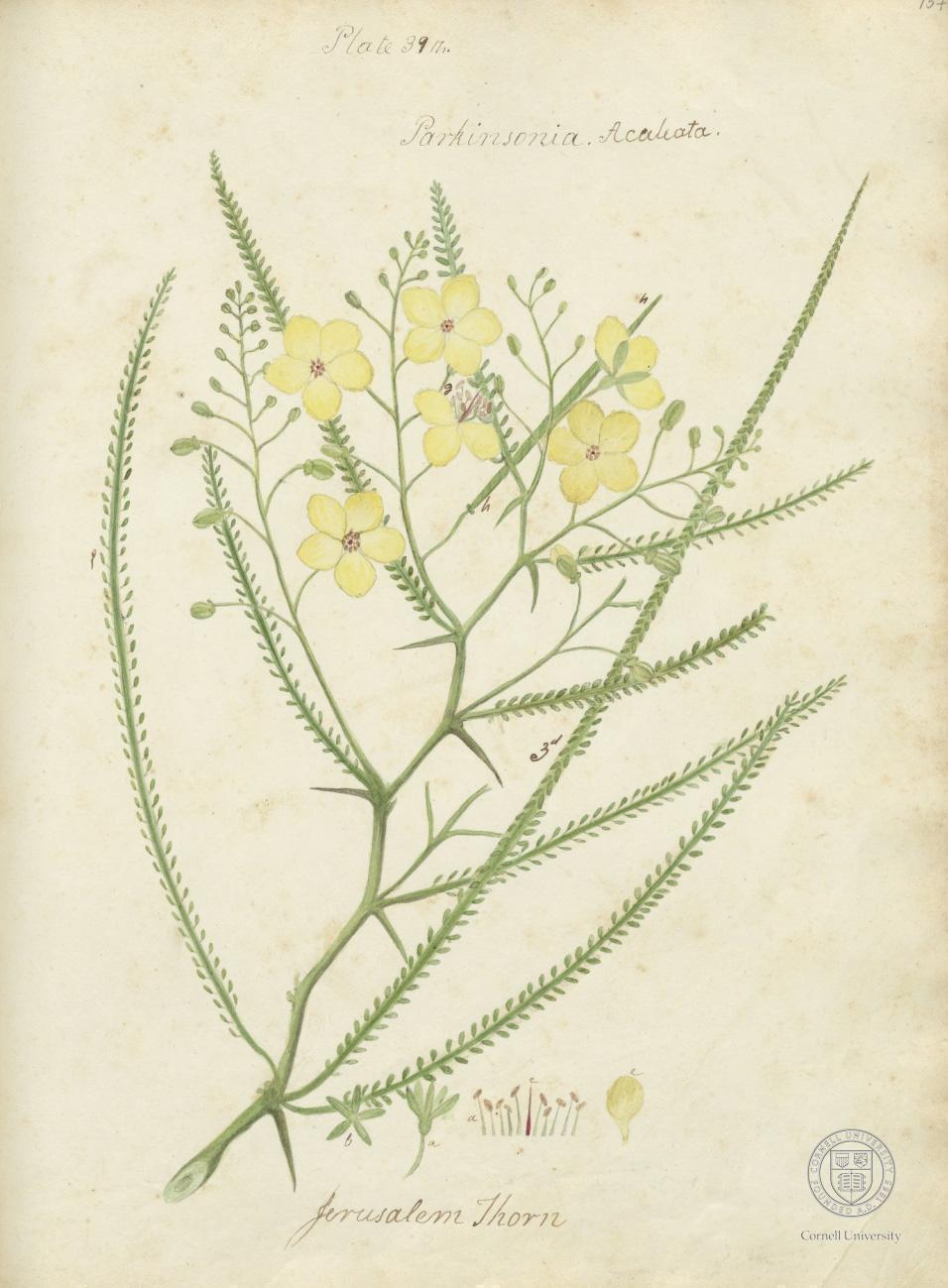 A través de la biblioteca digital Hathi Trust, hemos visto que varias de las especias que catalogó en Cuba, están también en nuestro ‘Jardín Cosmopolita’ de Sevilla, como es el caso del Palo verde Parkinsonia aculeata, y que hemos decidido, en homenaje a Nancy Anne, ilustrar para nuestra web con uno de sus dibujos. En estos días iremos conociendo a otras mujeres botánicas relevantes, pero esta vez será de Sevilla, nada más y nada menos, que nuestra ‘exploradora del mes’.
