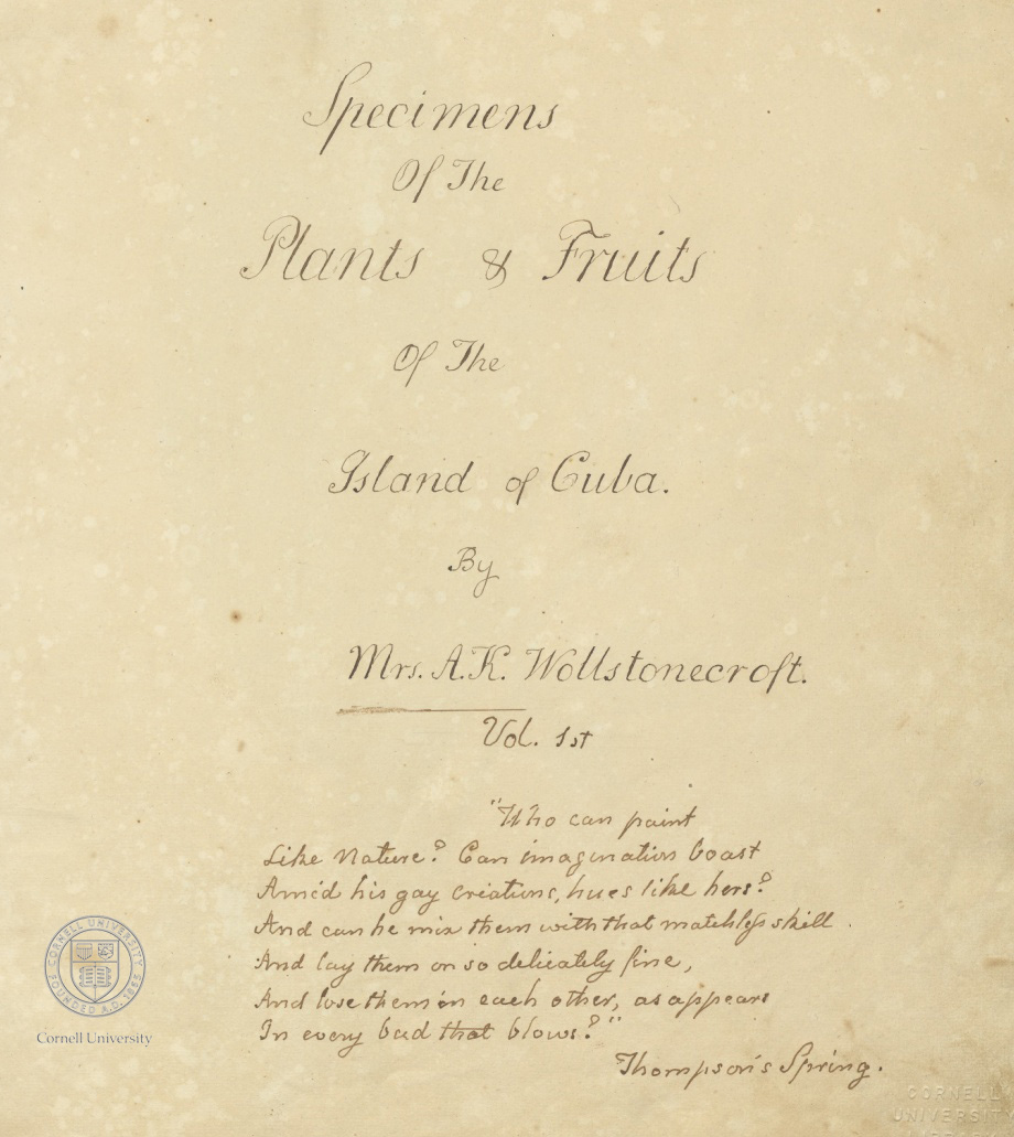 En estos días y gracias a la Universidad de Cornell hemos descubierto una historia de las que merecen ser contadas y rescatadas del olvido. Nancy Anne Kingsbury Wollstonecraft fue una botánica, ilustradora y defensora de los derechos de las mujeres que en 1817 se fue de Estados Unidos a Cuba, donde realizó un atlas de la flora botánica en la provincia de Matanzas. Nancy Anne recopiló este trabajo en un manuscrito llamado ‘Especies de plantas y frutas de la la Isla de Cuba’, en el que desarrolló una amplia investigación acompañada de unas preciosas ilustraciones. Tras dos siglos desde su realización, la Universidad de Cornell ha digitalizado su trabajo, difundiendo así esta magnífica rareza, que no solo nos descubre un gran inventario de la época colonial, sino que también rescata y visibiliza el trabajo de una mujer relevante en la historia de la botánica.