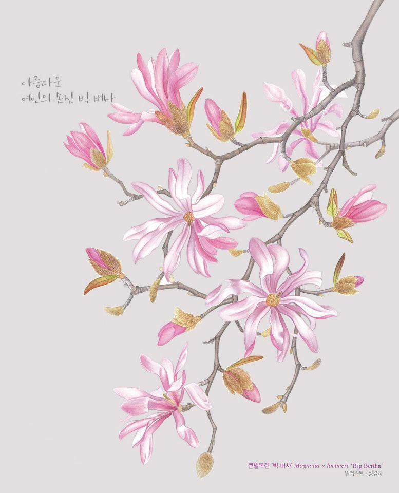 Toma forma de pequeño árbol multitallo o arbusto (como el M. stellata). Su mayor atractivo reside en sus grandes flores de unos 12 pétalos, generalmente blancas o rosadas, y que florecen sobre el árbol desnudo, antes de salir las hojas, de forma muy temprana.Procedencia