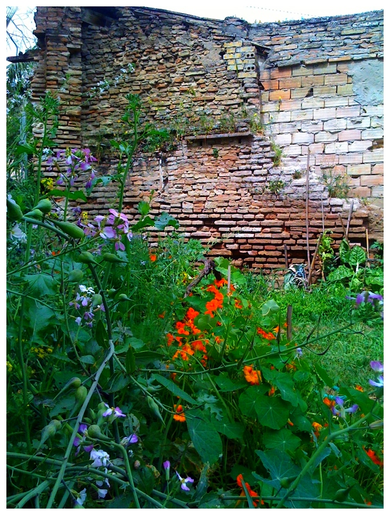 El Huerto del Rey Moro es, sobre todo, un lugar verde de esparcimiento y disfrute para uso del vecindario. Es, además, un sitio cargado de historia, pues se cree que su relación con la horticultura periurbana viene desde los siglos XII o XIII. Gran parte de lo que es el actual HRM fue ya la zona de jardines y huertas de la llamada Casa del Rey Moro, el inmueble doméstico más antiguo de Sevilla tras el Alcázar, de estilo gótico-mudejar, sede de la actual Fundación Blas Infante. Esta antigua huerta tenía su entrada original por un estrecho pasaje que viene desde la calle Sol, que está entre la misma Casa del Rey Moro y la medianera de otro inmueble. Pasado y presente unidos en el mayor espacio no mercantilizado del caso histórico de Sevilla: nada más y nada menos que 5000 m2 cuadrados que fueron limpiados de escombros para recuperarlo como ya era antaño: encuentro vecinal, ocio, recreo. Antes peleas de gallos y huertas…hoy cine de verano, talleres y huertas… La horticultura actúa en este contexto tan especial como aglutinante de personas, comunidad y saberes colectivos. Un pozo, tres norias, acequias hispano-musulmanas enterradas… ¿No es mágico que haya de nuevo bancales cultivados conviviendo con sus ancestros…?
