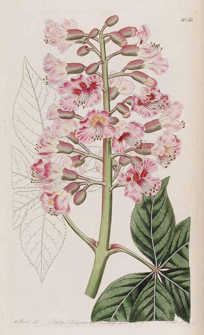 SapindaceaeAesculus es el nombre latino dado por Linneo a partir del nombre latino para un tipo de roble que produce bellotas. El epíteto carnea, significa 'de color carne', por sus flores. El Aesculus x carnea se considera un híbrido fértil entre A. hippocastanum y su pariente americano el A. pavia. Tiene un menor tamaño, hojas más rugosas y generalmente más pequeñas. Se cree que surgió en Alemania entorno a los comienzos del siglo XIX.
