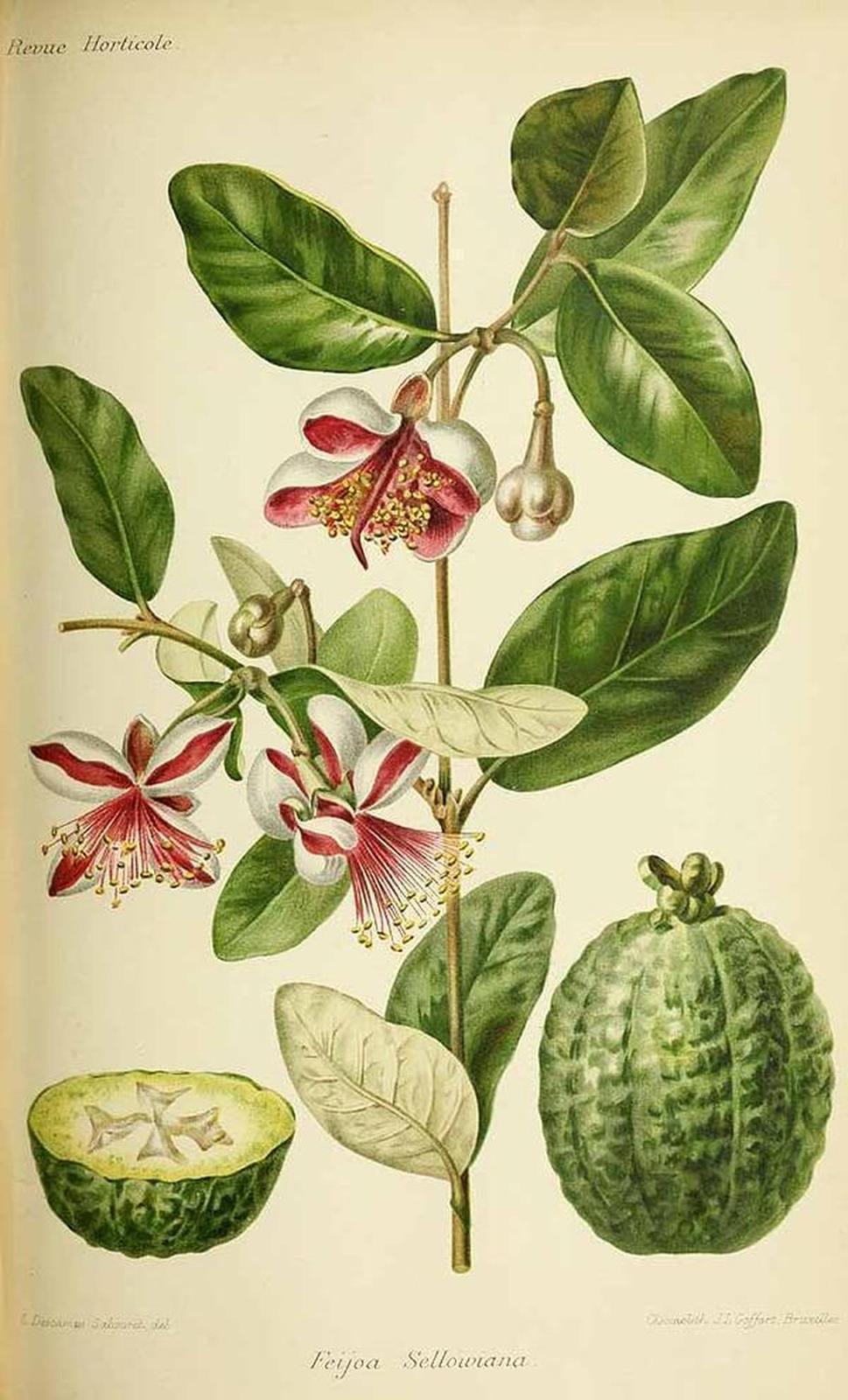 Su nombre científico es un doble homenaje a Brasil y su botánica. Fue bautizada como Feijoa por el ilustre botánico alemán Otto Karl Berg en honor de João da Silva Feijó, botánico brasileño del siglo XVIII. Sellowiana en memoria del alemán Friedrich Sellow que fue uno de los primeros botánicos exploradores del Brasil.Procedencia
